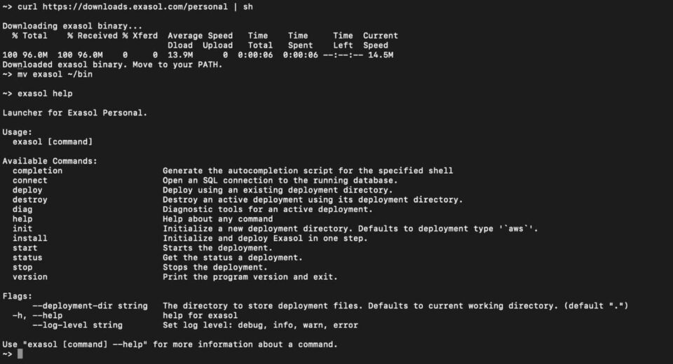 curl https://exasol.com/downloads/exasol – link? - Deploy with one command: